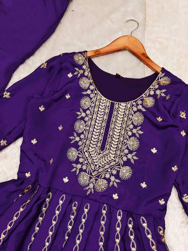 Here's Presenting You A Sparking ✨ Embroidery dress This chinnon Anarkali with