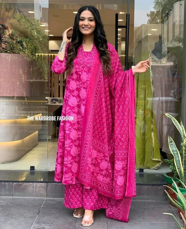 5558 *New Full anarkali 3pcs Pure cotton Kurti Pant Dupatta 60.60 Set . Kurti with neck embroidery work with pant and dupatta With Floral Print