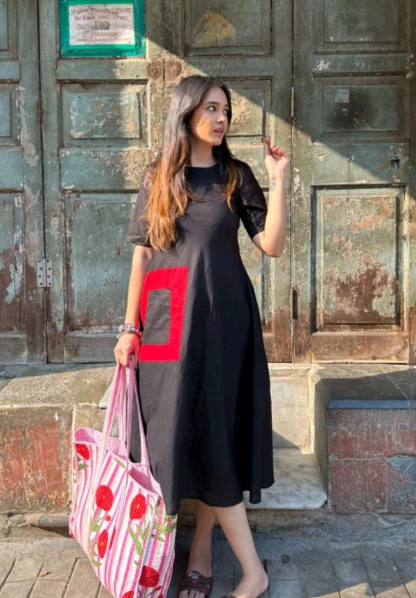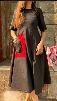 Black is the color. Black is bold ,black is beautiful presenting to you our very stunning dress with elegant sleeves and pocket in dress.