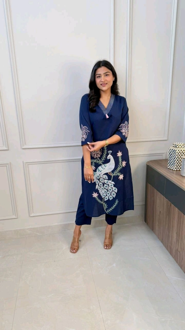 5622 Pure Linen Cotton Kurta Pants With Katha Work embroidery work*