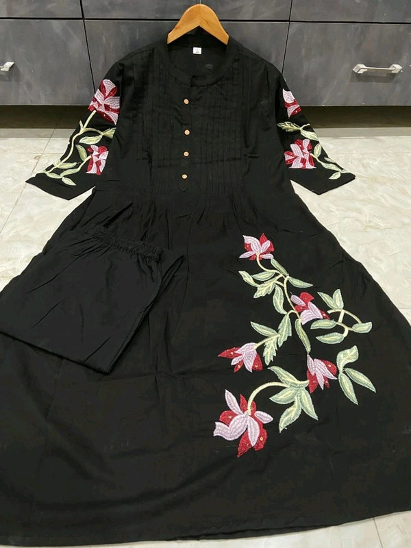 *💃 Beautiful Pure Cotton Fabric Pleated Pattern Kurta With Heavy embroidered panels Work and Sequence Work & Pintex work Kurti Paired With Pant☺️ 🫶🏻💃*