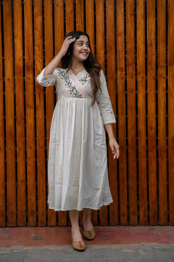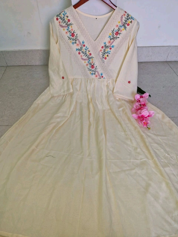 💥Launching rayon dress with floral embroidery and crochet lace detailing on yoke and sleeves💥