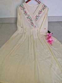 💥Launching rayon dress with floral embroidery and crochet lace detailing on yoke and sleeves💥
