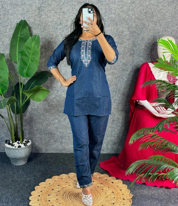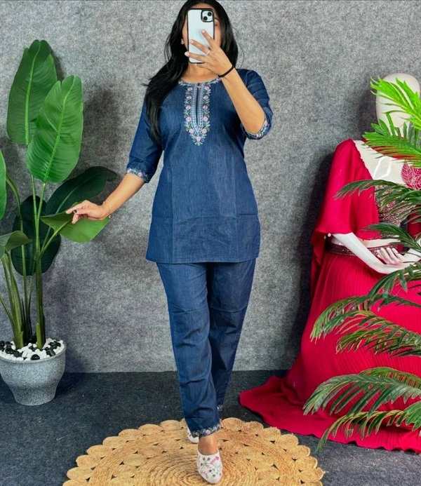 *Our Pure denim cotton Chic Coordset with handwork paired with Comfy