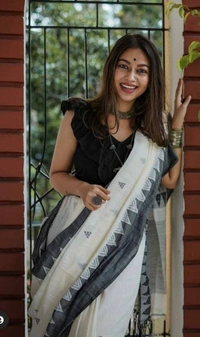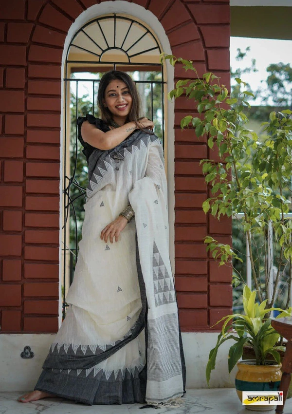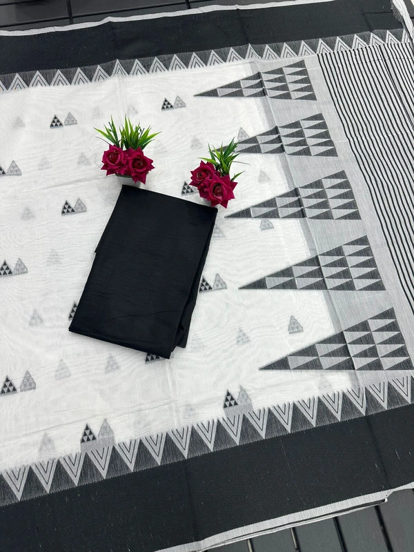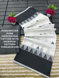 *HANDWOVEN PURE MERCERISED COTTON WITH MANIPURI PATTERN THREADWORK - BLACK AND WHITE*