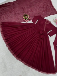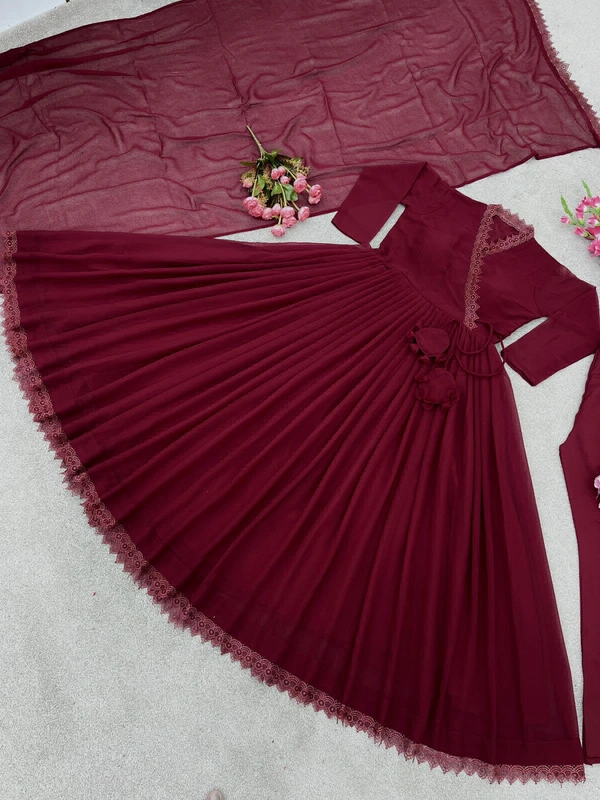 Presenting New Anarkali Faux Georgette Gown With Fully Flair and Full Stitched With Dupatta And Bottom Ready To Wear Collection